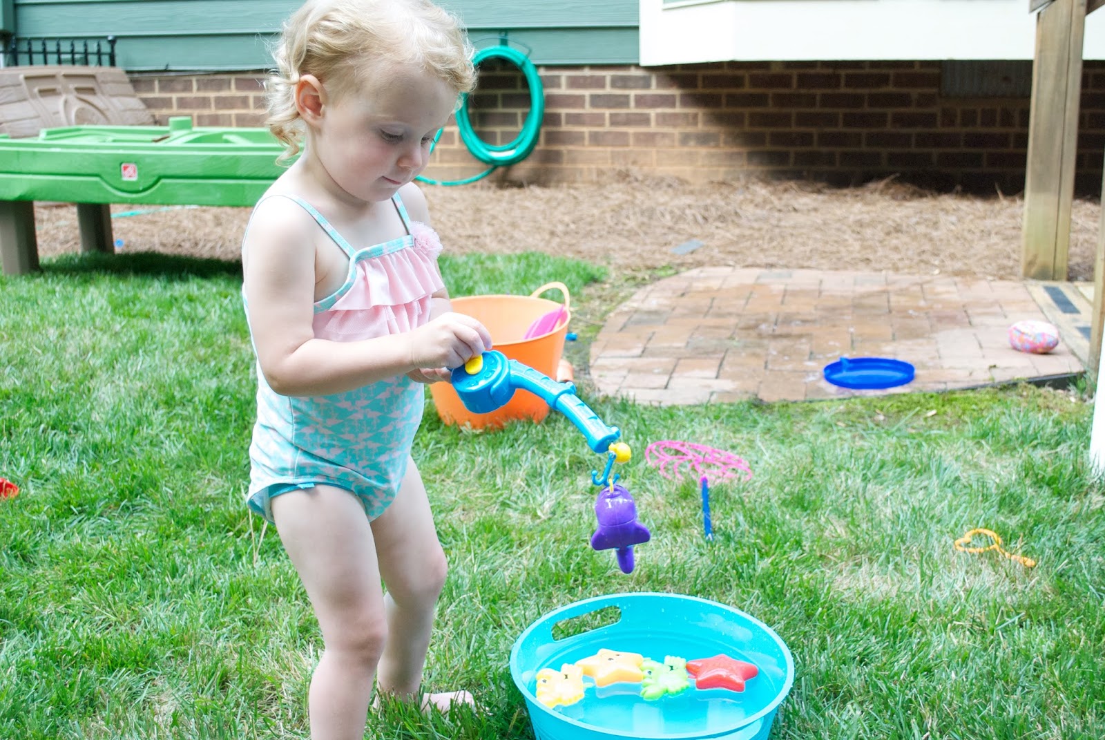 | Playing in her new sand/water table |